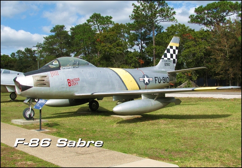 The North American F-86 Sabre, sometimes called the Sabrejet, is a transonic jet fighter aircraft. The Sabre is best known as the United States' first swept wing fighter that could counter the similarly-winged Soviet MiG-15 in high-speed dogfights over the skies of the Korean War (1950–1953). Considered one of the best and most important fighter aircraft in that war, the F-86 is also rated highly in comparison with fighters of other eras. Although it was developed in the late 1940s and was outdated by the end of the '50s, the Sabre proved versatile and adaptable, and continued as a front-line fighter in numerous world air forces until the last active operational examples were retired by the Bolivian Air Force in 1994. Courtesy: Wikipedia |